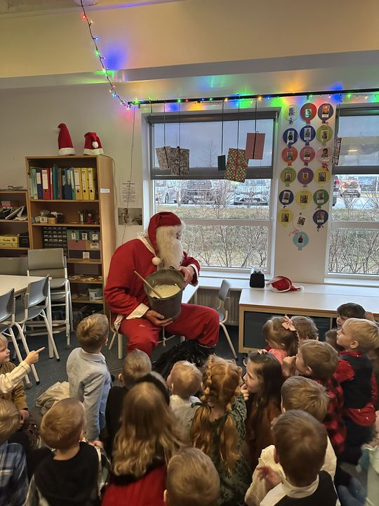 Síðastliðinn fimmtudag var jólaball hjá okkur í Arnarsmára. Þar var gengið í kringum jólatréð og sungin jólalög. Jólasveinarnir Skyrgámur og Kjötkrókur komu í heimsókn og voru með alls kyns sprell og dansa áður en þeir gáfu öllum börnunum jólagjöf.