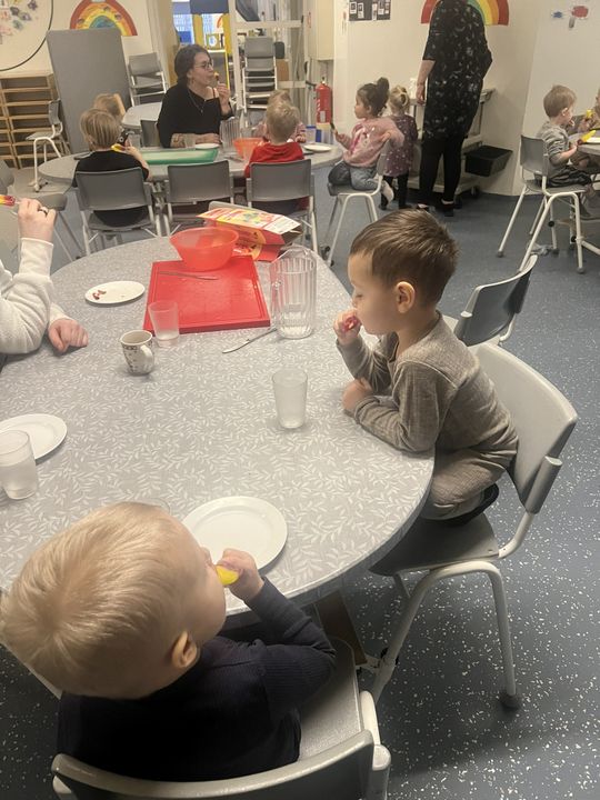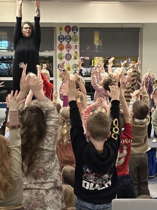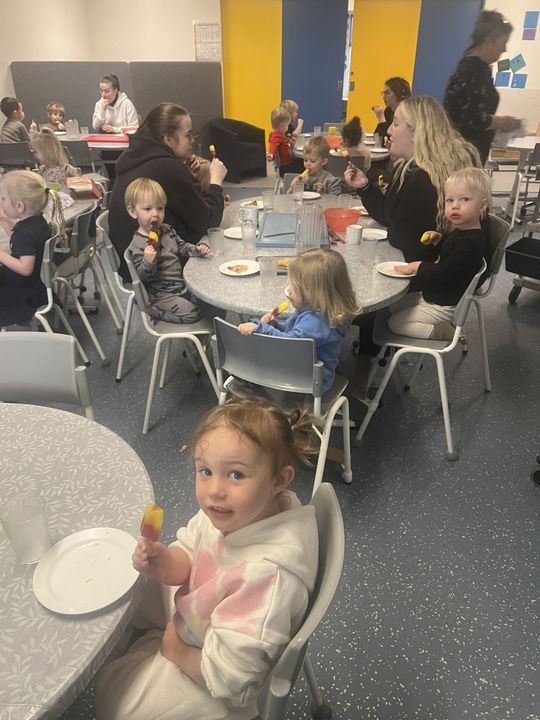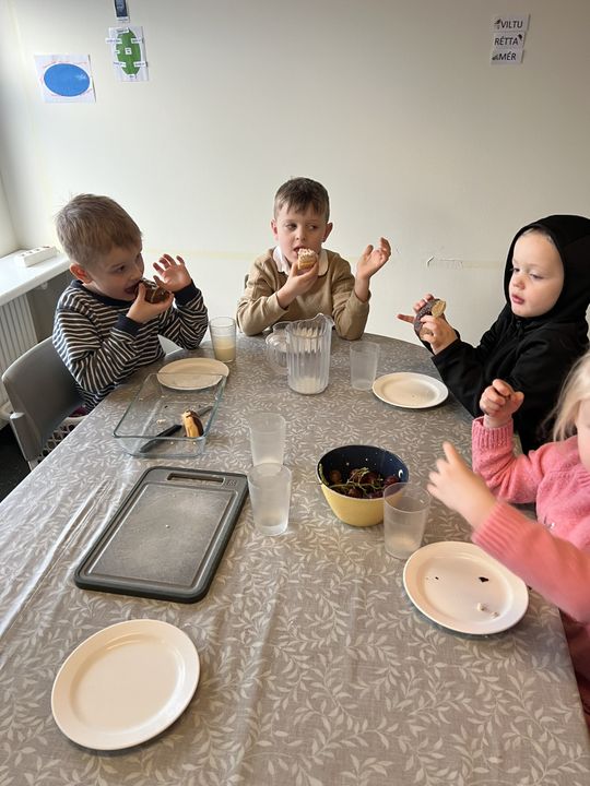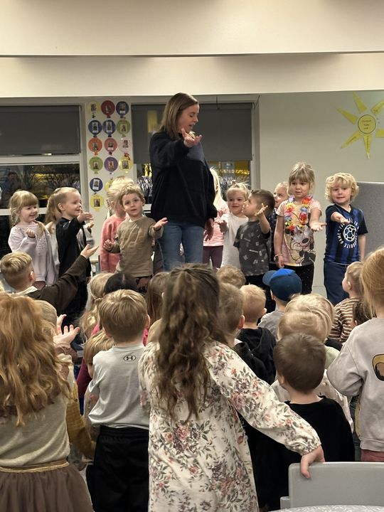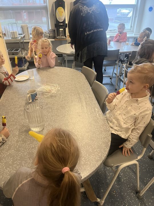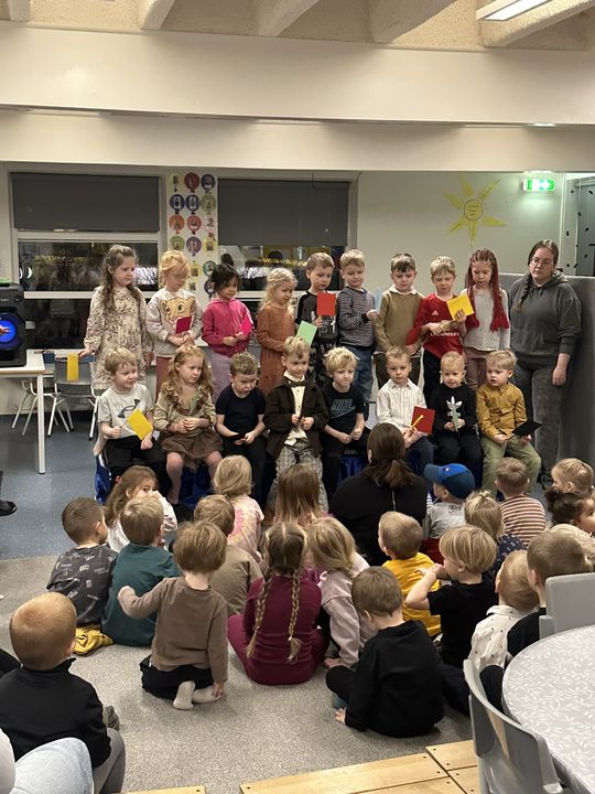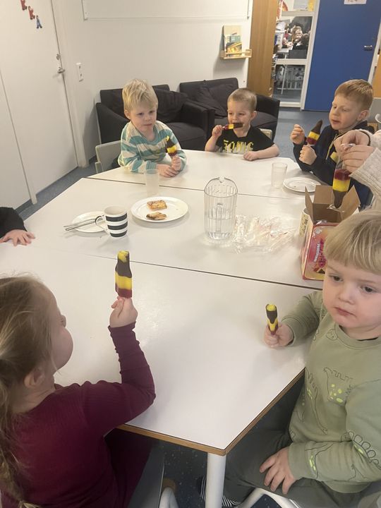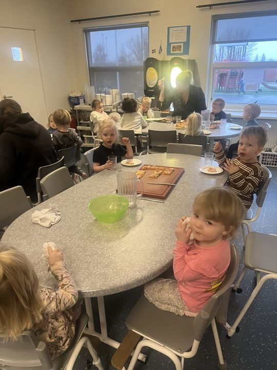 Í tilefni þess að leikskólinn okkar varð 26 ára í gær, 7.janúar, héldum við uppá afmæli í dag. Í morgun var afmælis-Gaman saman þar sem allar deildir buðu uppá eitt atriði. Gulldeildin söng Regnbogalagið, Akur bauð okkur í sund í Kópavogslaug og Salalaug, Brekka var með skemmtilegan blöðruleik, Bakki bauð uppá jóga og Engi var með Superman-lagið. Hún Sigga gaf svo leikskólanum flotta diskókúlu í afmælisgjöf og því þurfti að halda smá danspartý í lokin.