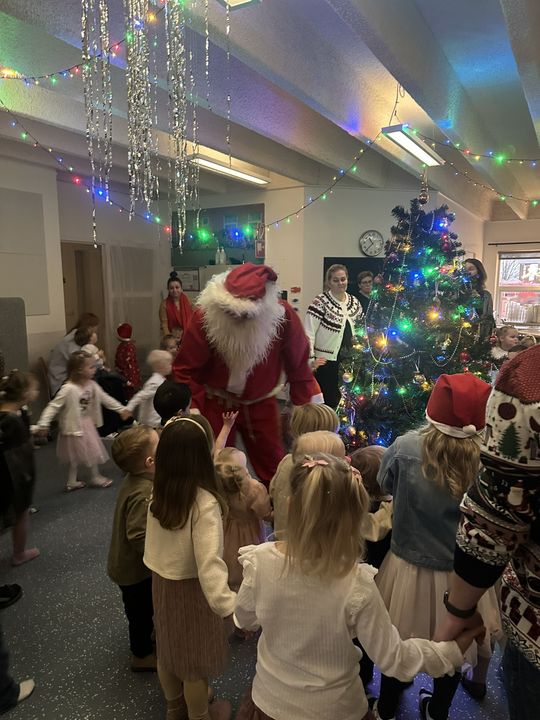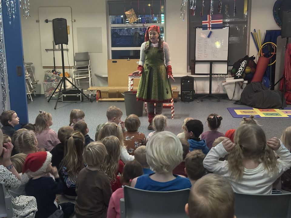 Í dag var svo jólaball en þar var gengið í kringum jólatréð og sungið, auk þess sem jólasveinarnir Skyrgámur og Kjötkrókur kíktu í heimsókn.