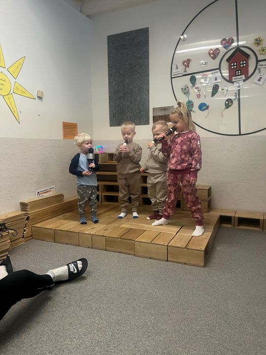 · Matsalur: Í matsal var unnið með þörfina Gleði. Þar var rætt um hvað gleði þýðir og hvernig hægt er að sinna gleðiþörfinni okkar á jákvæðan hátt. Börnin fengu svo að prófa hljóðfæri og einnig að stíga upp á svið og syngja í míkrófón.
