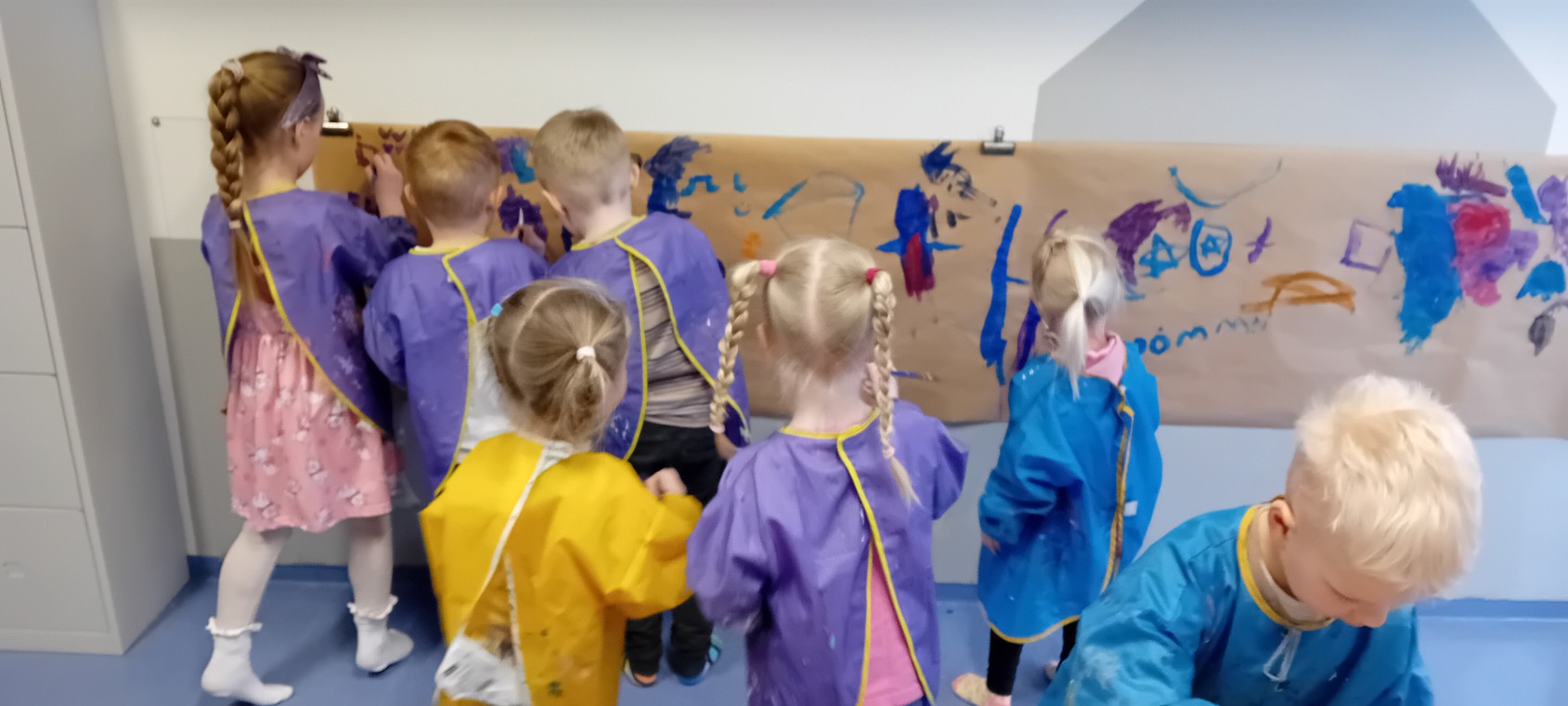 - Matsalur: Í matsal var unnið með Barnasáttmálann. Þar var rætt um Barnasáttmálann, réttindi og hvernig þau sæju fyrir sér yndislegan heim. Síðan gerðu þau mynd af sjálfum sem var sett á hnöttinn . Að lokum voru gróðursett sólblómafræ og verða sólblómin síðan sett út í sumar.